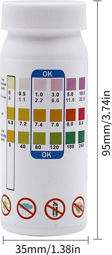Entwickelt zum Testen von freiem Chlor, Gesamtchlor, pH-Wert, Gesamtalkalität, Gesamthärte und Cyanursäure