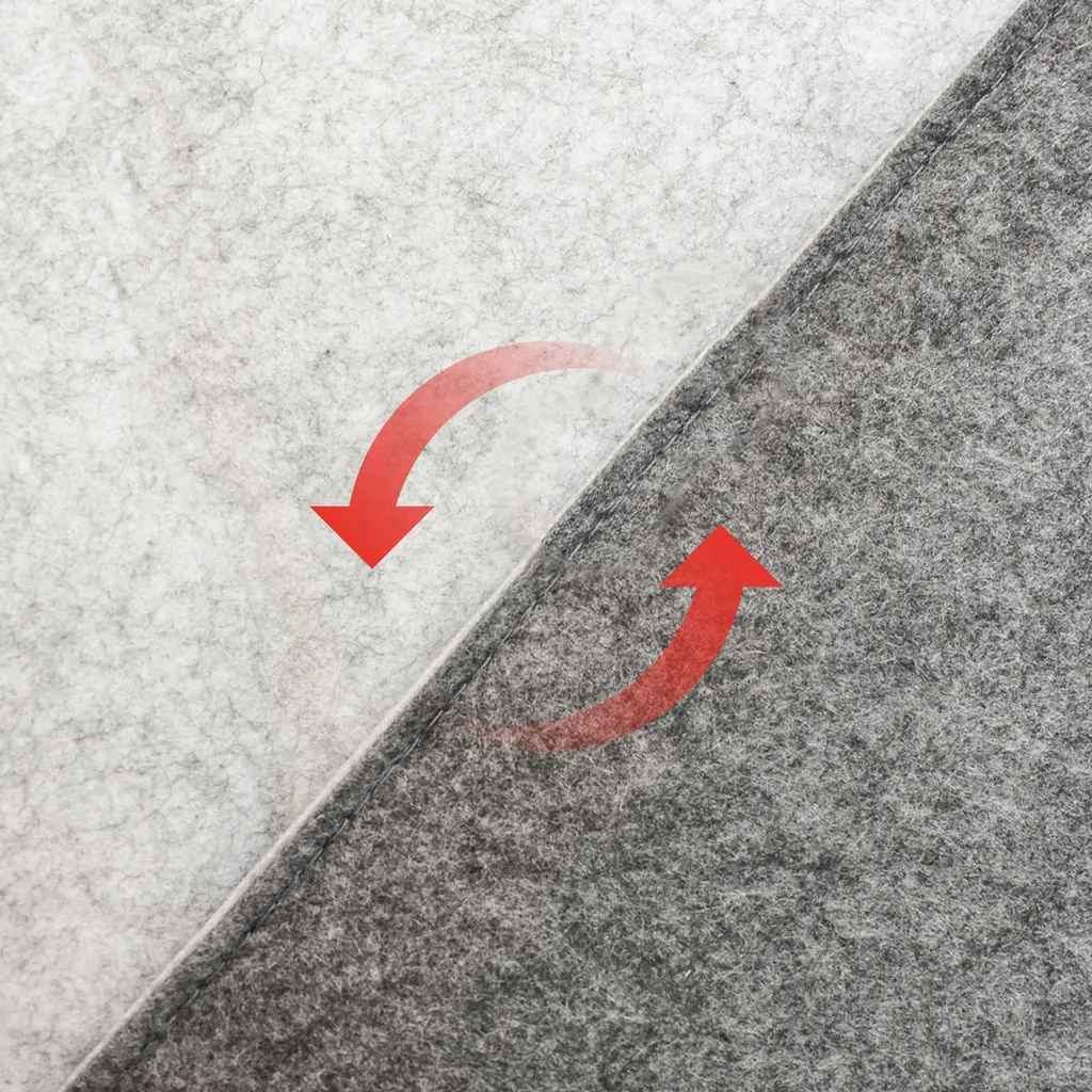 Die streichelweiche Oberfläche ist extra pflegeleicht. Der dichte Filz nimmt kaum Schmutz auf, Flüssigkeit lässt sich einfach abwischen. Flecken entfernst Du schnell mit einem feuchten Schwamm oder einer weichen Bürste.