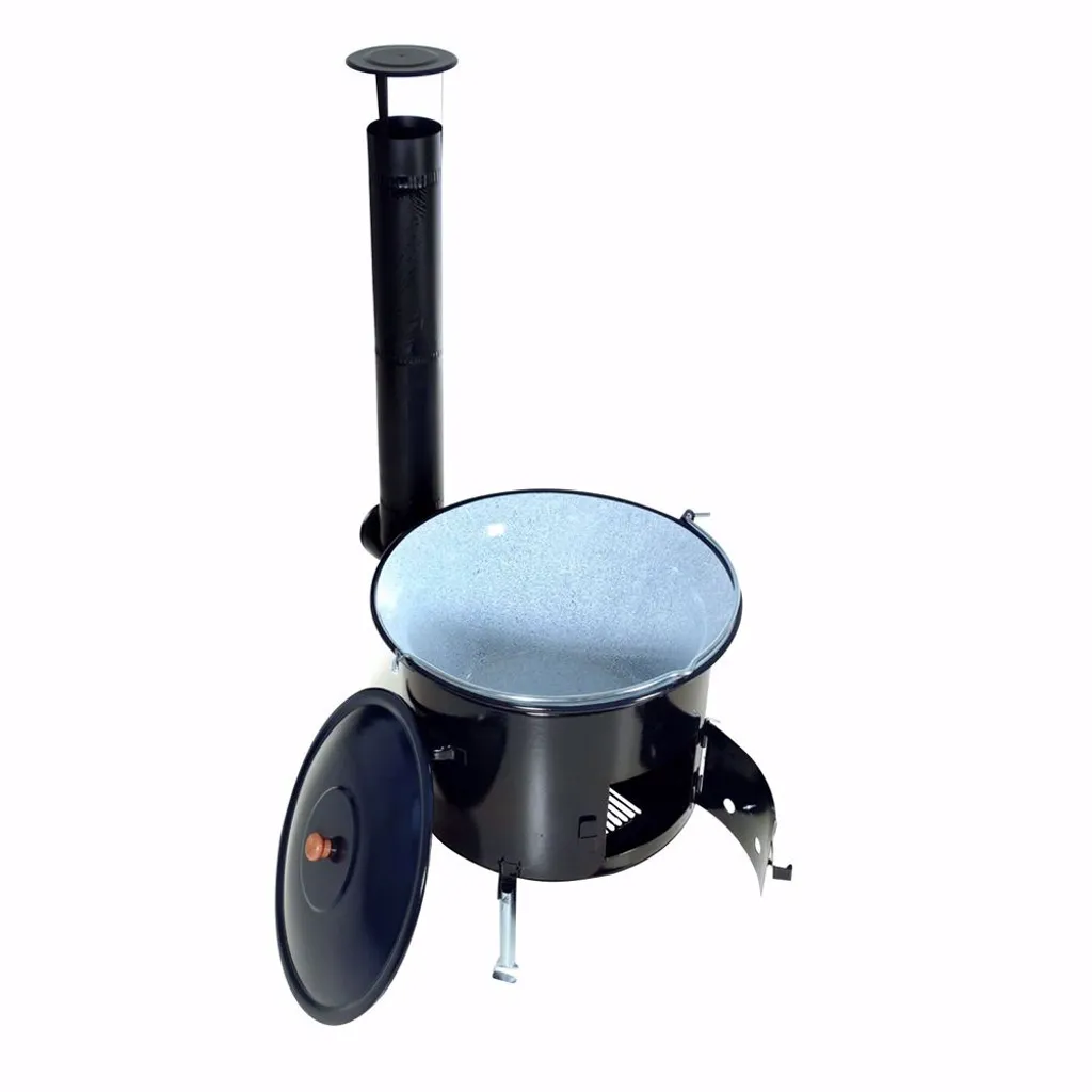 - Material = Emailliertes Stahlblech | Durchmesser Ofen = 45cm | Größe Gulaschkessel = 30 Liter | Inklusive Aschekasten, Topf & Deckel