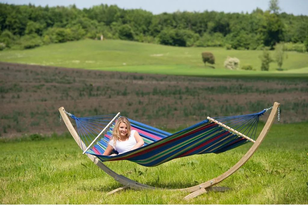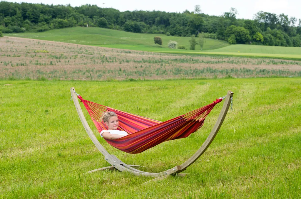 Kronos ist das Kleinste unter den AMAZONAS Hängemattengestellen aus Holz. Durch die speziell entwickelte Kettenaufhängung ist Kronos für Hängematten mit einer Gesamtlänge von 270 bis 320 cm verstellbar. Bis zu 120 kg belastbar!
