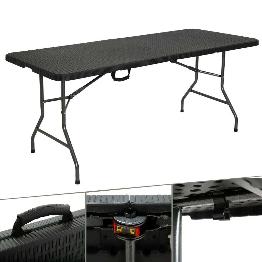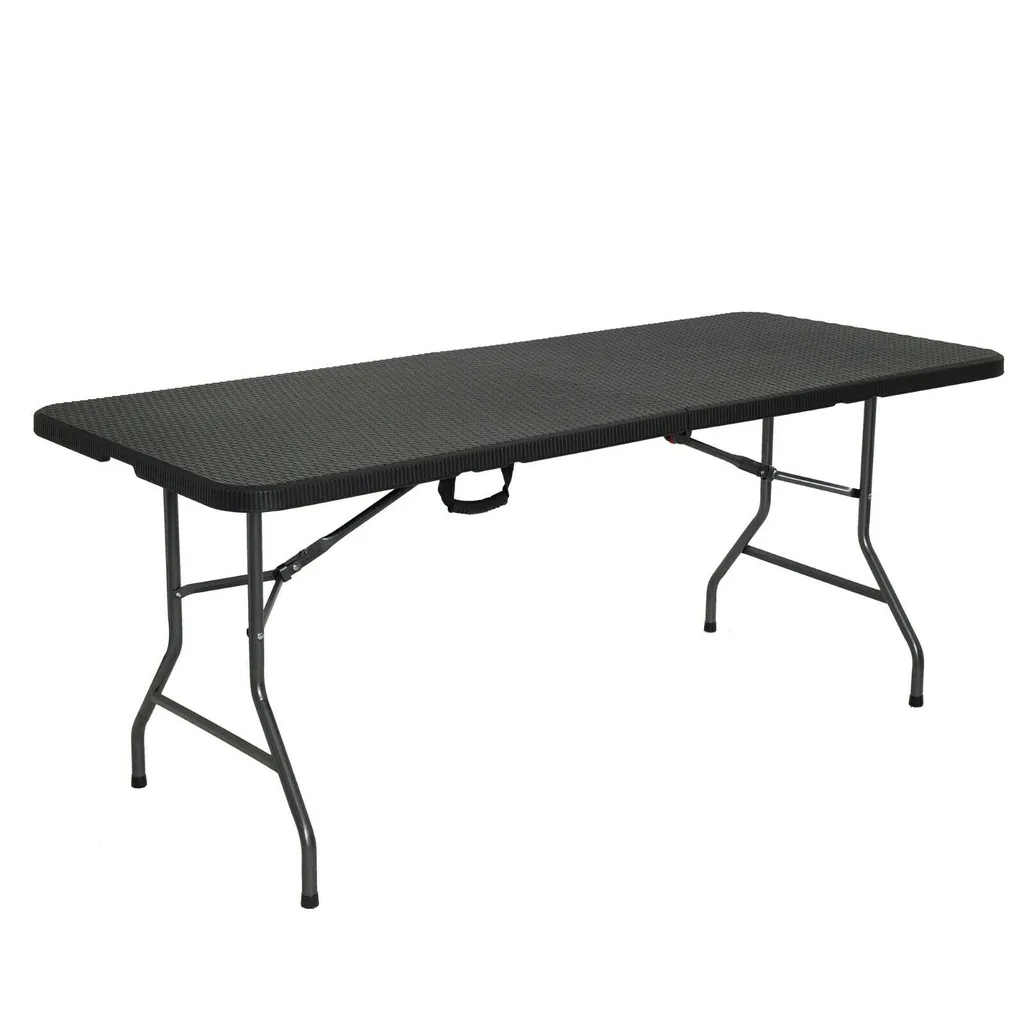 Es passt aufgrund seines schlichten Designs im Rattan-Look auf jede Terrasse oder Garten und perfekt zum gemütlichen Beisammensitzen und kann vielseitig eingesetzt werden. Egal ob als Esstisch, Arbeitstisch, Werktisch, Campingtisch oder auch Montagetisch in der Werkstatt – dieser stabile Klapptisch wird Ihre Erwartungen zu 100 % erfüllen.