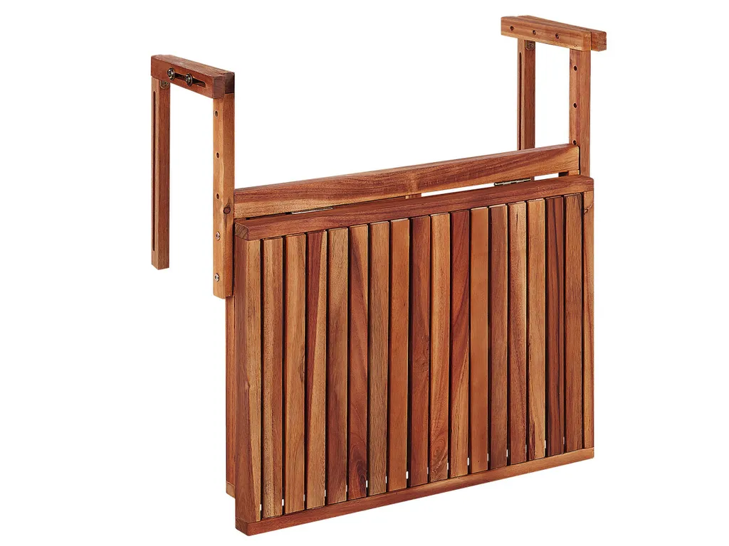 Klappbarer Tisch für Balkongeländer. Dieser praktische Hängetisch ist eine wunderbare Ergänzung für alle, die nur wenig Platz auf ihrem Balkon haben. Er ist aus robustem und widerstandsfähigem Akazienholz gefertigt, was die natürliche Ästhetik des Materials zur Geltung bringt. Das Möbelstück verfügt über eine verstellbare Klemme, wodurch es an praktisch jedes Balkongeländer passt. Wenn der Tisch nicht in Gebrauch ist, lässt er sich einfach zusammenklappen, so dass Sie noch mehr Platz sparen können.
