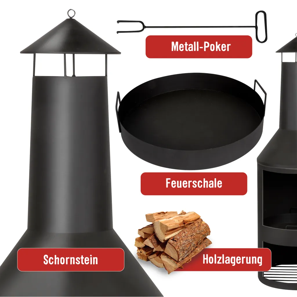 BBQ Collection Gartenkamin – Mit Schornstein – Outdoor-Ofen – 134 X 44,5 CM – Mit Schürhaken – Schwarz