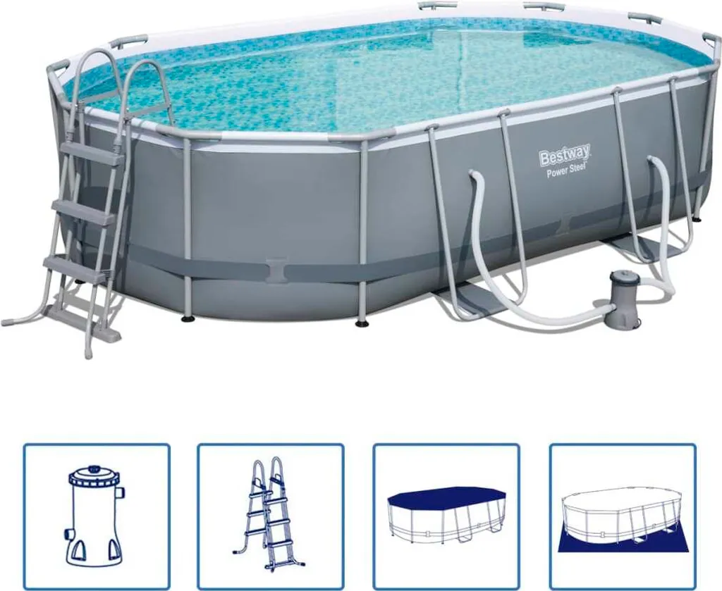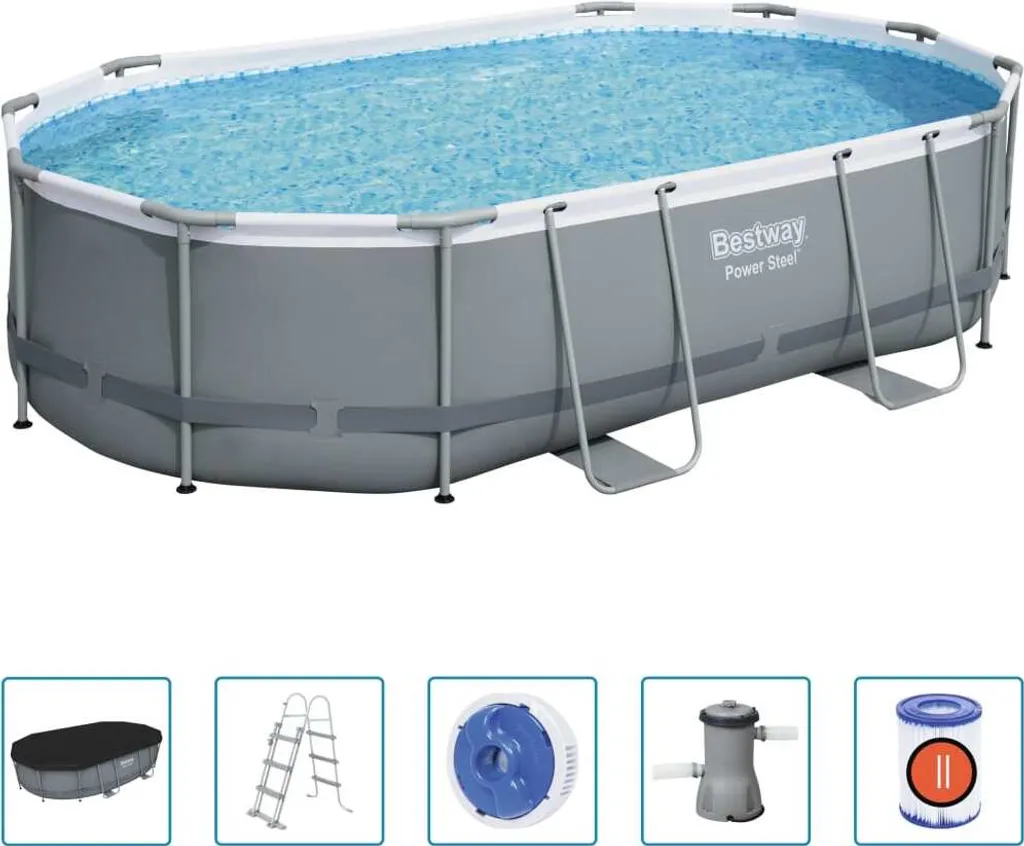 1x Bestway Power Steel™ Frame Pool Komplett-Set, oval 488 x 305 x 107 cm 56448