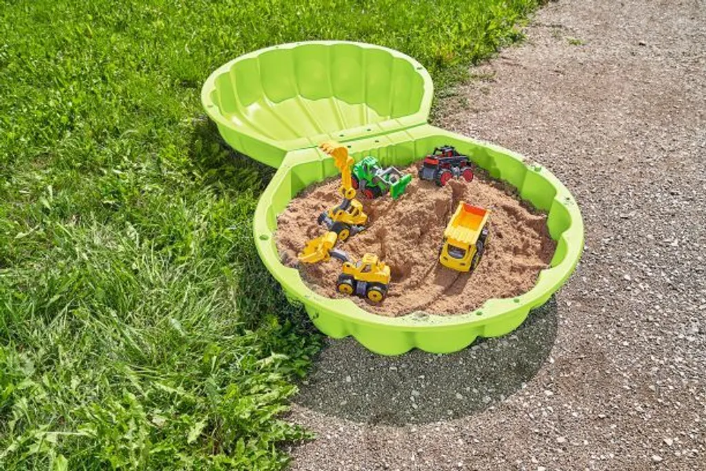 Die apfelgrüne BIG Sand- und Wassermuschel ist Sandkasten und Planschbecken in Einem. Das zweiteilige Set aus hochwertigem Kunststoff in Muschelform erfüllt die Spielwünsche kleiner Sonnenanbeter.