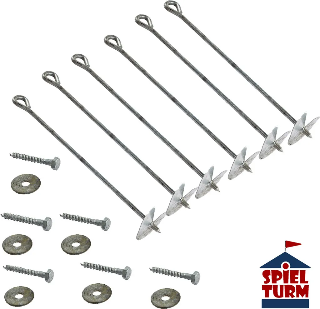 Das Set besteht aus 6 Bodenankern zum eindrehen