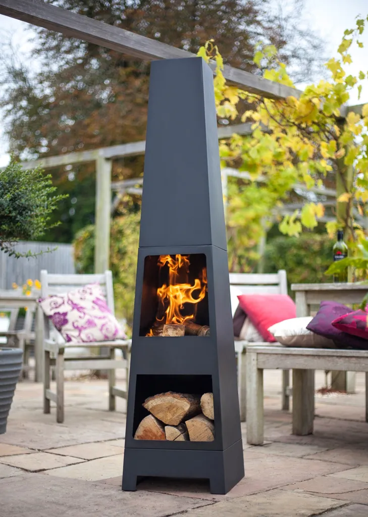 Terrassen-Kamin Malmö in modernem Design, mit Holzablagefach Stahl Farbe: schwarz Maße: B 36 x T 36 x H 150 cm Gewicht: ca. 17 kg