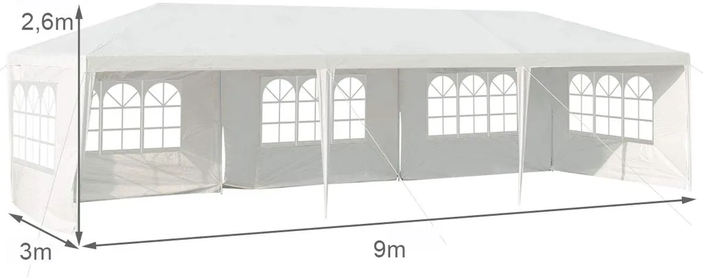 Abmessungen des Pavillons: 9 x 3 x 2,6 m (L x B x H)