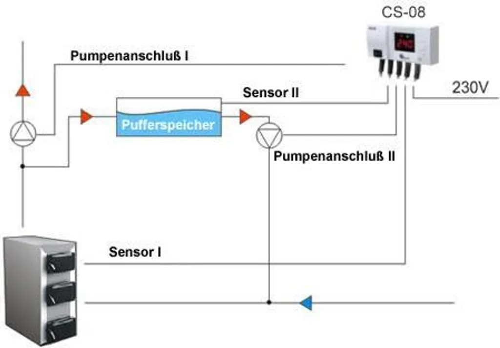 Der CS-08 ist eine einfache Regelung für einen Direktheizkreis und einem Warmwasserspeichers.
