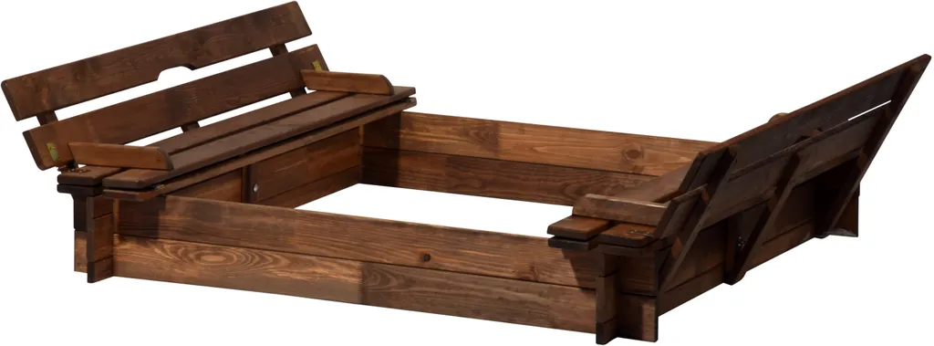 Spiel und Spaß im heimischen Garten bietet dieser hochwertige Sandkasten von dobar. Die verschließbare Buddelkiste verfügt über eine solide Abdeckung aus Massivholz, die sich im Nu in zwei bequeme Sitzbänke ausklappen lässt. Die beiden Sitzbänke haben eine Sitzhöhe von ca. 22,5 cm und können jeweils mit 100 kg belastet werden. Für eine größtmögliche Lebensdauer der Sandkiste sollte diese im Winter überdacht gelagert und regelmäßig mit Holzschutzfarbe gestrichen werden. Sämtliches Montagezubehör, sowie eine bebilderte Aufbauanleitung ist im Lieferumfang enthalten. Der Sandkasten ist im verschlossenen Zustand ca. 118 x 118 x 21 cm (L x B x H) groß und wiegt ca. 18,2 kg.