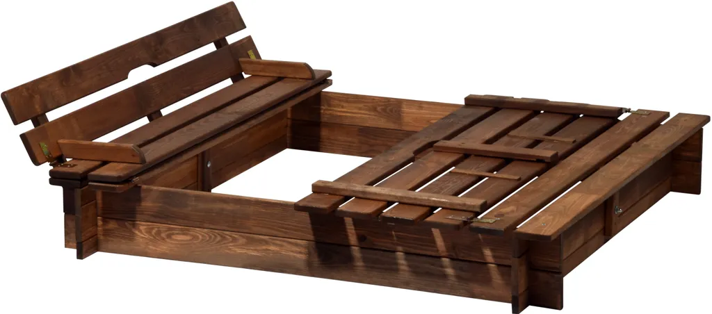 Dobar Sandkasten Mit Sitzbänken, Verschließbare Sandkiste Für Zu Hause, 118 X 118 X 21 Cm, Kiefer, Braun