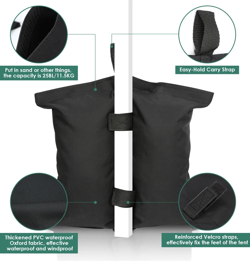 Verdickter wasserdichter Sandsack: Fuellen Sie den Sandsack einfach mit Sand oder anderen schweren Gegenstaenden und befestigen Sie ihn an den Fuessen des Zeltes, um die Stabilitaet des Zeltes im Freien zu staerken!