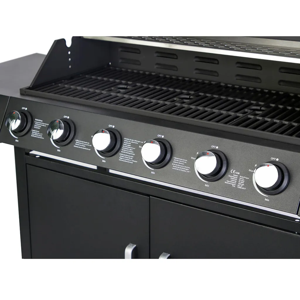Leistung: ca. 20,5 kW (6 Hauptbrenner je 3 kW + 1 Seitenbrenner 2,5 kW)