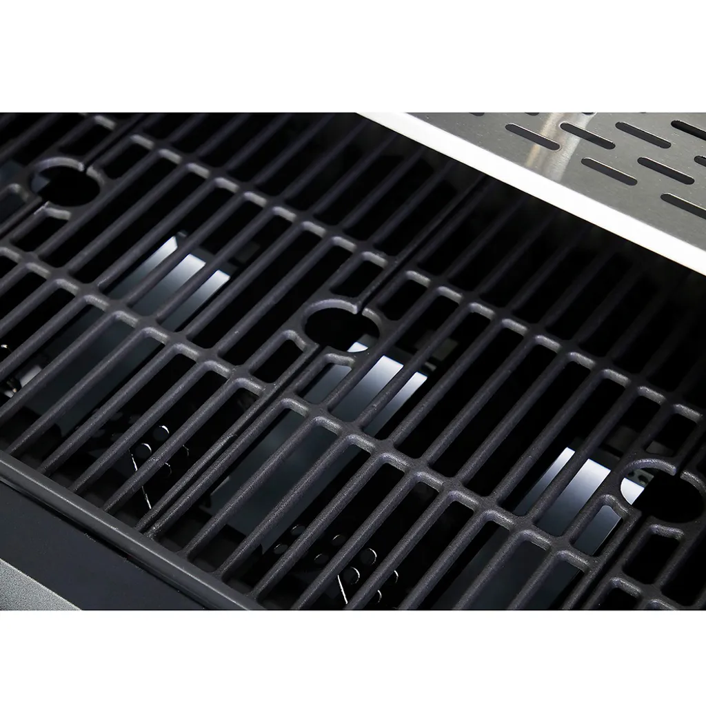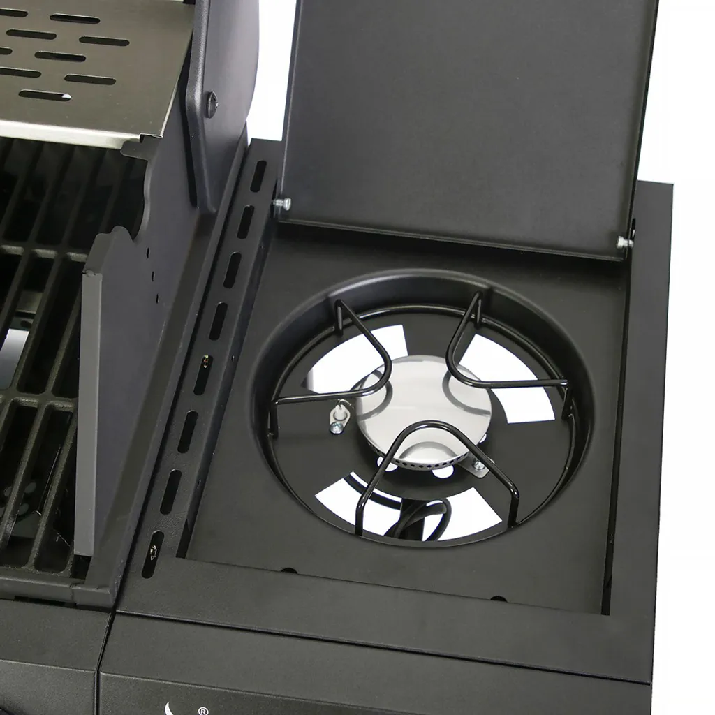 Das schlichte, hochwertige Design in Kombination mit der hohen Funktionalität des Gerätes, lässt keinerlei Wünsche offen und wird sowohl Besitzer als auch Gäste beeindrucken und die vielfältigen Einstellungsmöglichkeiten dieses Grills erlauben es, jede beliebige Speise optimal zu garen – für eine reichhaltige und gesunde Ernährung. Ein Seitenbrenner ermöglicht zudem zusätzliche Flexibilität, z.B. können Sie damit gleichzeitig eine Soße kochen.