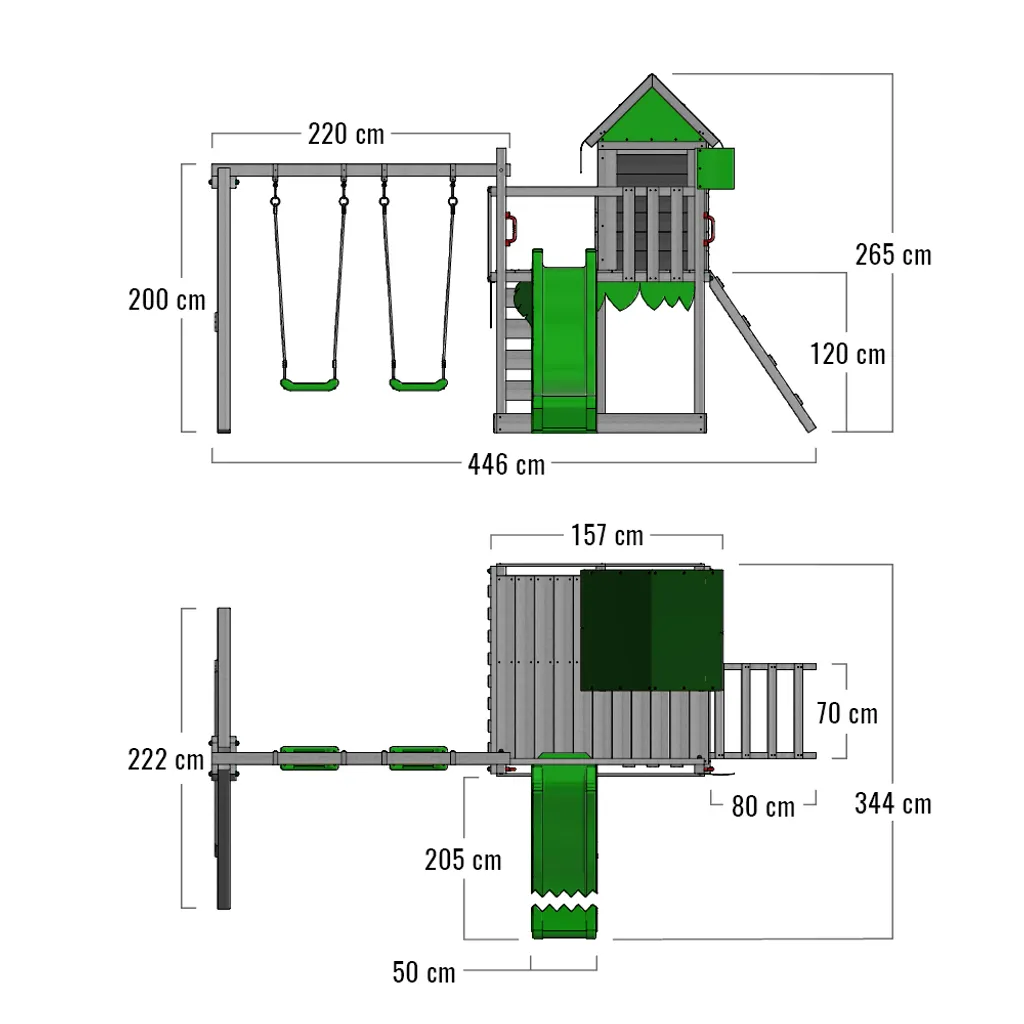 Wenn es oben einmal zu heiß wird, ist auch das kein Problem: Über die Wellenrutsche geht es blitzschnell wieder hinunter, wo du im kühlen Sand relaxen kannst. Aber etwas fehlt noch, um den ultimativen Dschungel-Spaß komplett zu machen: Auf der Schaukel saust du durch die Lüfte wie Tarzan höchstpersönlich. Fast so, als würdest du an einer Liane durch den Dschungel gleiten.