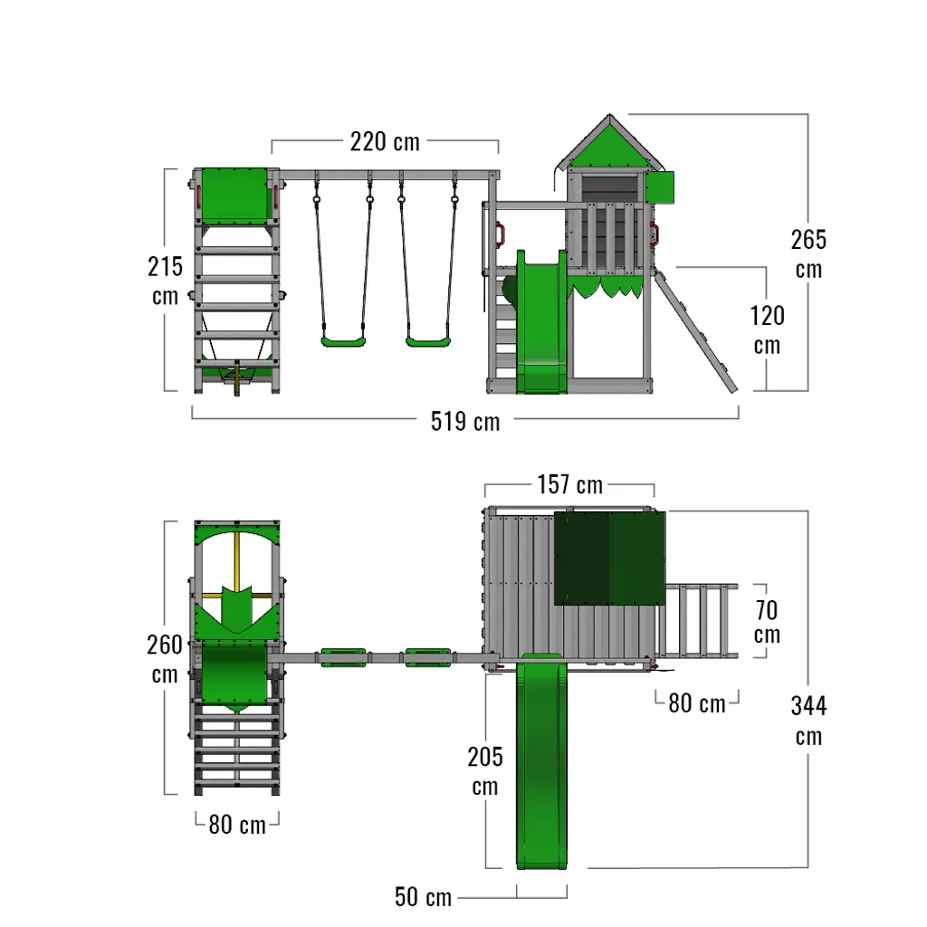 Mit dem JazzyJungle Jam XXL kommt das Dschungel-Flair in deinen Garten! Flink wie ein Äffchen erklimmst du deinen Spielturm über die Kletterleiter, während die Kletterprofis ihr Können an der Kletterwand unter Beweis stellen. Oben angekommen stehen im überdachten Häuschen frische Kokosnüsse für dich und deine Freunde bereit. An der Ladentheke warten auch schon köstliche Drinks auf euch. So lässt sich der gigantische Ausblick über den Dschungel doch am besten genießen!
