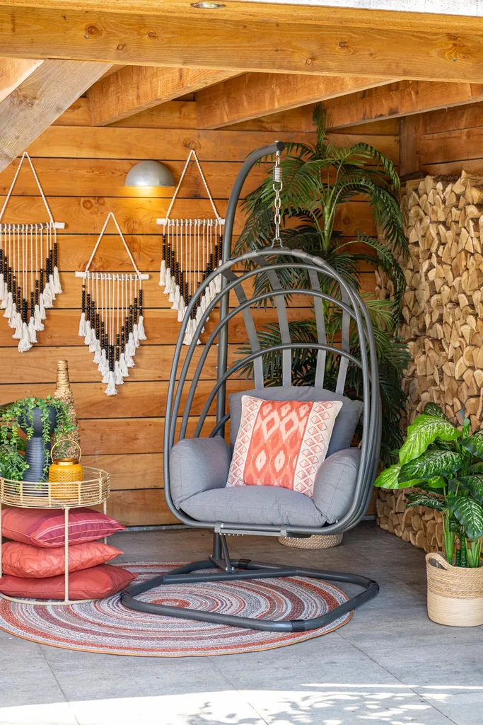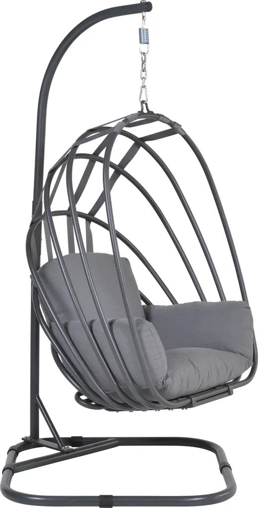 Der Suez Swing Hängekorb bietet ein auffälliges Retro-Design und absoluten Komfort. Der Stahlrahmen sorgt für Stabilität und durch seine Pulverbeschichtung kann er nicht rosten. Der Korb besteht aus einzelnen Aluminiumstreben, die durch stabile Bänder zusammengehalten werden. Der Korb hat ein schönes, dickes Lounge Kissen in der Farbe Earl Grey, das durch zwei Schlaufen am Korb befestigt werden kann. Das Kissen ist nicht wasserdicht und muss bei Niederschlag trocken gelagert werden. Es ist jedoch von einem Reißverschluss versehen, sodass es einfach abgezogen und gewaschen werden kann. Für den Hängesessel ist eine passende Schutzhülle erhältlich.