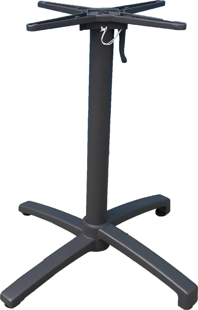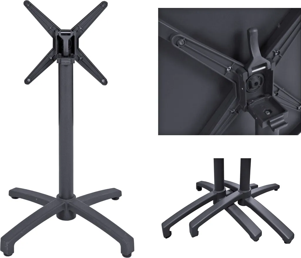 Das graue Tischgestell TREVISO aus Aluminium besitzt 4 Standfüße, die für einen sicheren Stand sorgen. Es wird entsprechend mit dafür geeigneten Tischplatten verschraubt und besitzt zudem eine praktische Klappfunktion. Die Gesamtmaße des Gestells betragen 68 x 68 x 70 cm (L x B x H).