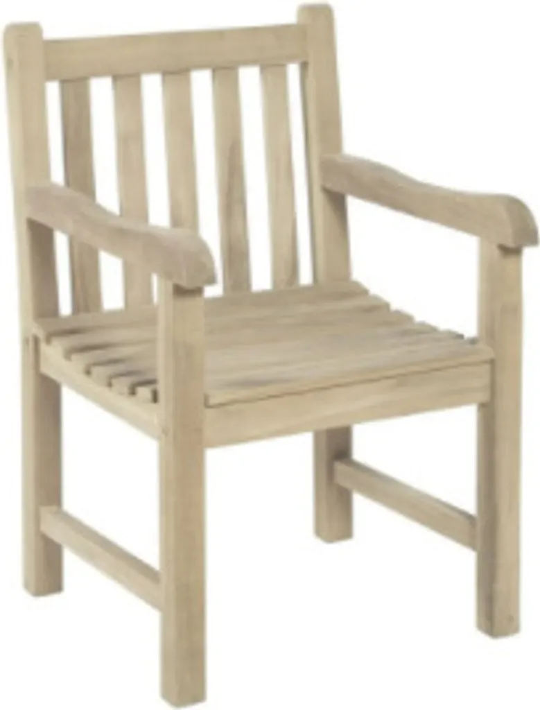 Dieser außergewöhnlich schöne Gartensessel mit Armlehnen wurde aus tropischem Teakholz gefertigt und ist naturbelassen Falls Sie die für Teakholz typische Patina (silbergraue Färbung) wünschen, sollten Sie das Holz nicht ölen, andernfalls empfehlen wir Ihnen zur Pflege ein gutes Teakholz-Öl.