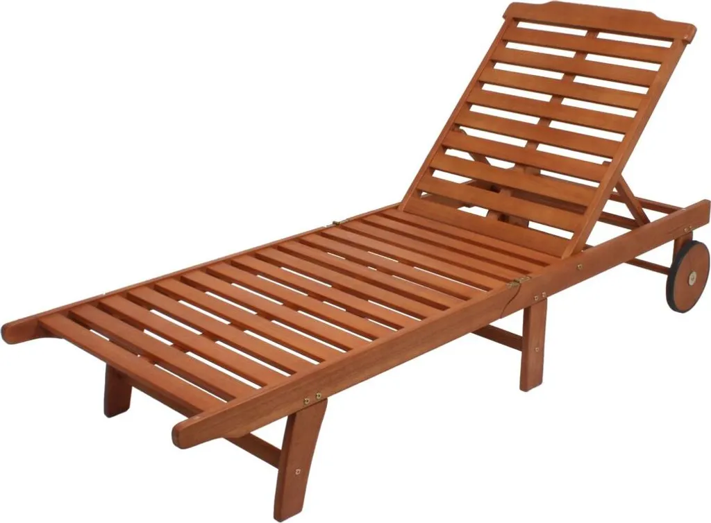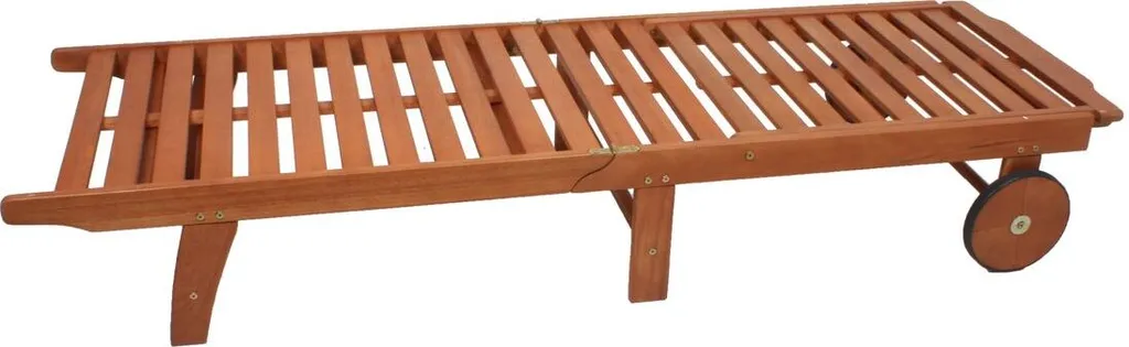 Einfach die Gartenliege aus Holz an den Lieblingsplatz ziehen, aufklappen und herrlich entspannt den Sommertag genießen! Die Liegefläche ist als bewährte Lattenkonstruktion gestaltet und die Rückenlehne der Roll-Liege lässt sich verstellen. Die Relaxliege lässt sich durch Scharniere kompakt zusammenklappen und bequem an Ihren Lieblingsplatz im Garten ziehen. Die Metallbeschläge der Gartenliege sind wetterfest und die geölte Holzoberfläche betont sehr schön den natürlichen Holzfarbton. Die Sonnenliege ist aus hochwertigem, witterungsbeständig geöltem Eukalyptusholz gefertigt, das aus nachhaltig bewirtschafteten Holzplantagen (FSC) stammt. Der Laubbaum wächst hauptsächlich in Australien und sein Holz gilt als besonders hart.