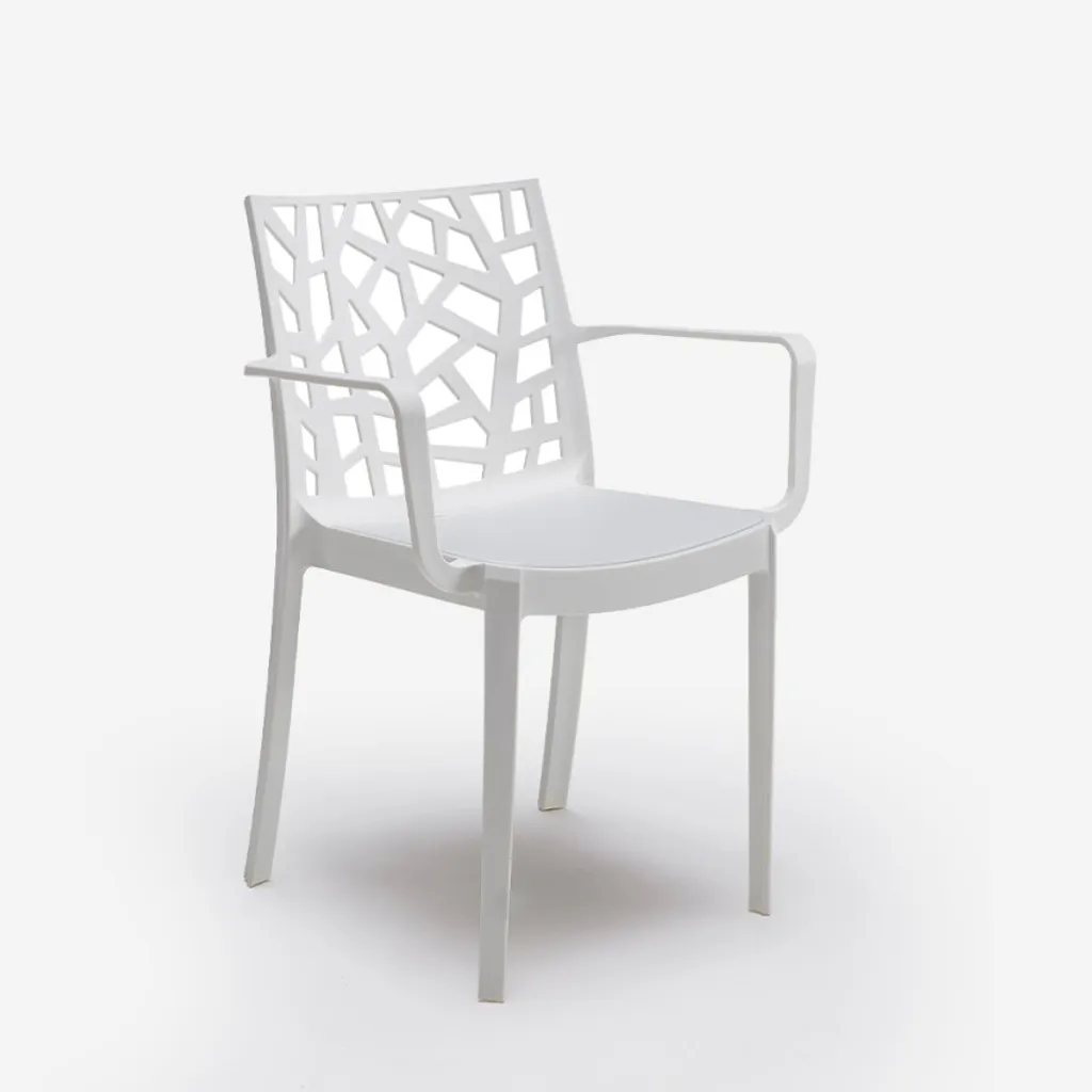 Der Matrix Armchair ist der perfekte Stuhl mit Armlehnen für ein modernes Ambiente, ob drinnen oder draußen. Das an ein Bienenkorb-Design angelehnte Design macht ihn zugleich anspruchsvoll und leicht kombinierbar mit jeder Art von Interieur. Der Stuhl besteht aus hochwertigem Polypropylen, das ihm eine hervorragende Beständigkeit gegen den täglichen Gebrauch und Widrigkeiten verleiht. Er eignet sich daher sowohl für Küchen, Esszimmer als auch für Außenbereiche, Pools und Terrassen jedwedem Dekorationsstil. Darüber hinaus ist die Struktur von mehreren Einheiten stackbar, um den Aufbau zu erleichtern.