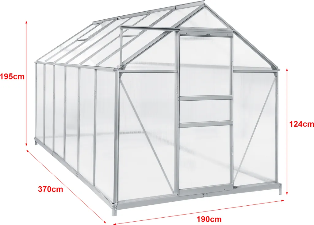 – Gewächshaus-Rahmen: Eloxiertes Aluminium