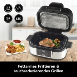GOURMETmaxx Tischgrill Rauchfrei Beef Grill BBQ Tisch Elektro Balkon Garten Rauchfrei 220 °C Schwarz
