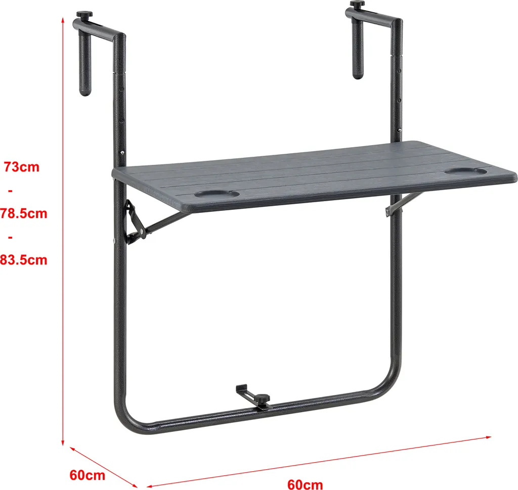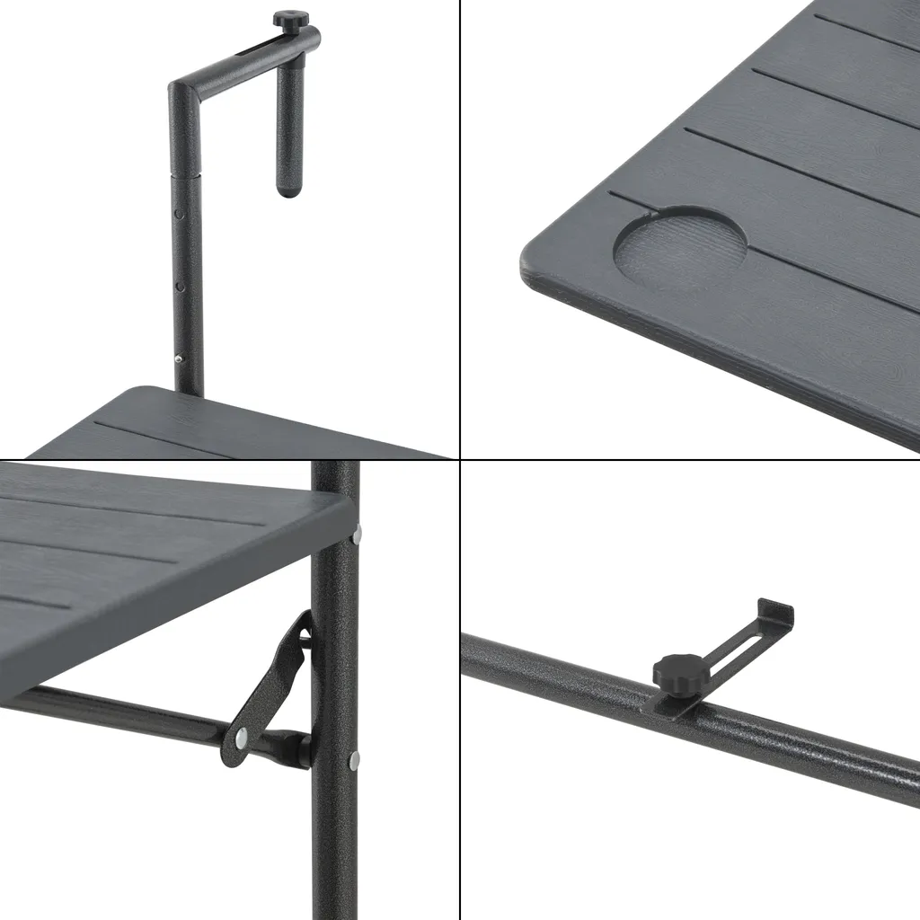 Der ausklappbare Hängetisch eignet sich ideal als Abstellmöglichkeit auf Ihrem Balkon. Egal ob als Kaffeetisch, als Pflanzentisch oder als Ablage, der Klapptisch macht stets eine gute Figur.