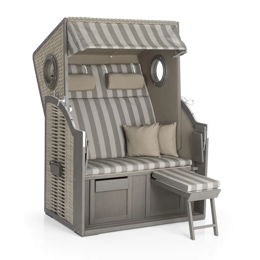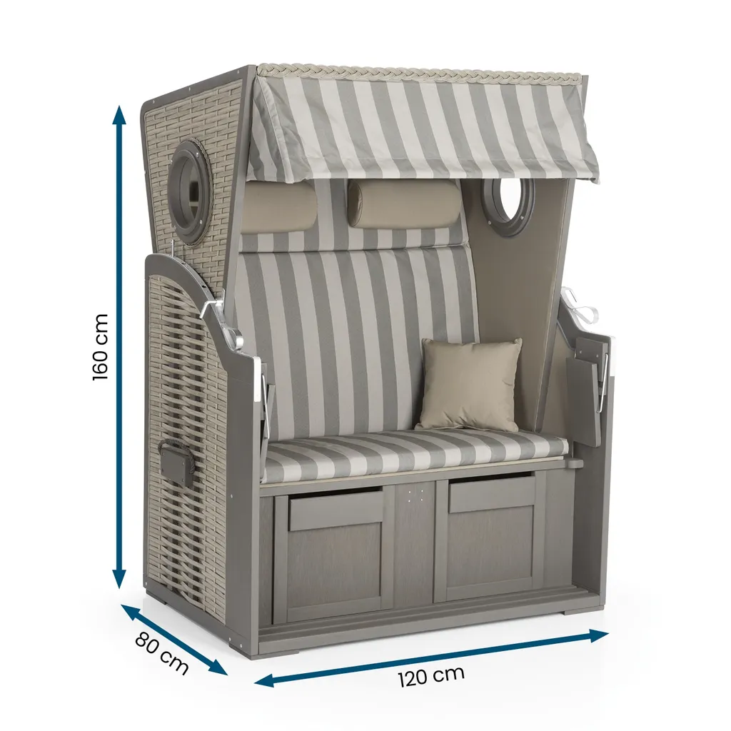 Der Hoberg 2-Sitzer-Strandkorb mit Bullaugen ist dein ideales Projekt zur Vorbereitung auf den Sommer. Dank der verständlichen leichten Anleitung ist er in kürzester Zeit aufgebaut. Schon kannst du es dir mit einer weiteren Person darin gemütlich machen.