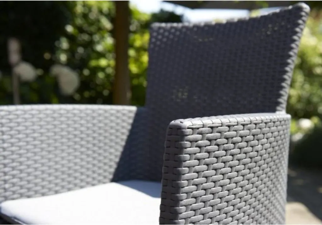 Dieser moderne Gartenstuhl in naturgetreuer und offener Rattanoptik wird das Highlight in Ihrem Garten, Terrasse oder Wintergarten! Genießen Sie Ihre Mahlzeiten im bequemen Dining Sessel Iowa. Der Sessel bietet bequemen Sitzkomfort durch eine hohe und ergonomische Rückenlehne und passt an viele Gartentische. Im Lieferumfang ist ein Sitzkissen enthalten. Der Sessel kann sehr gut mit dem Keter Tisch Symphony kombiniert werden.