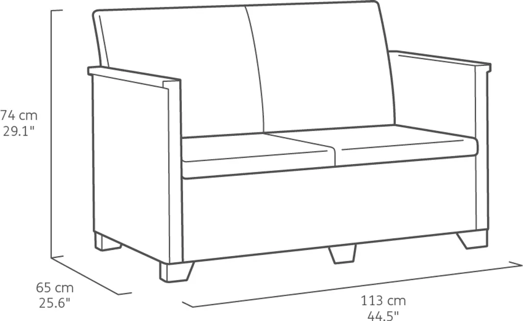 Maße 2-Sitzer: ca. 113 x 74 x65 cm (Breite x Höhe x Tiefe)