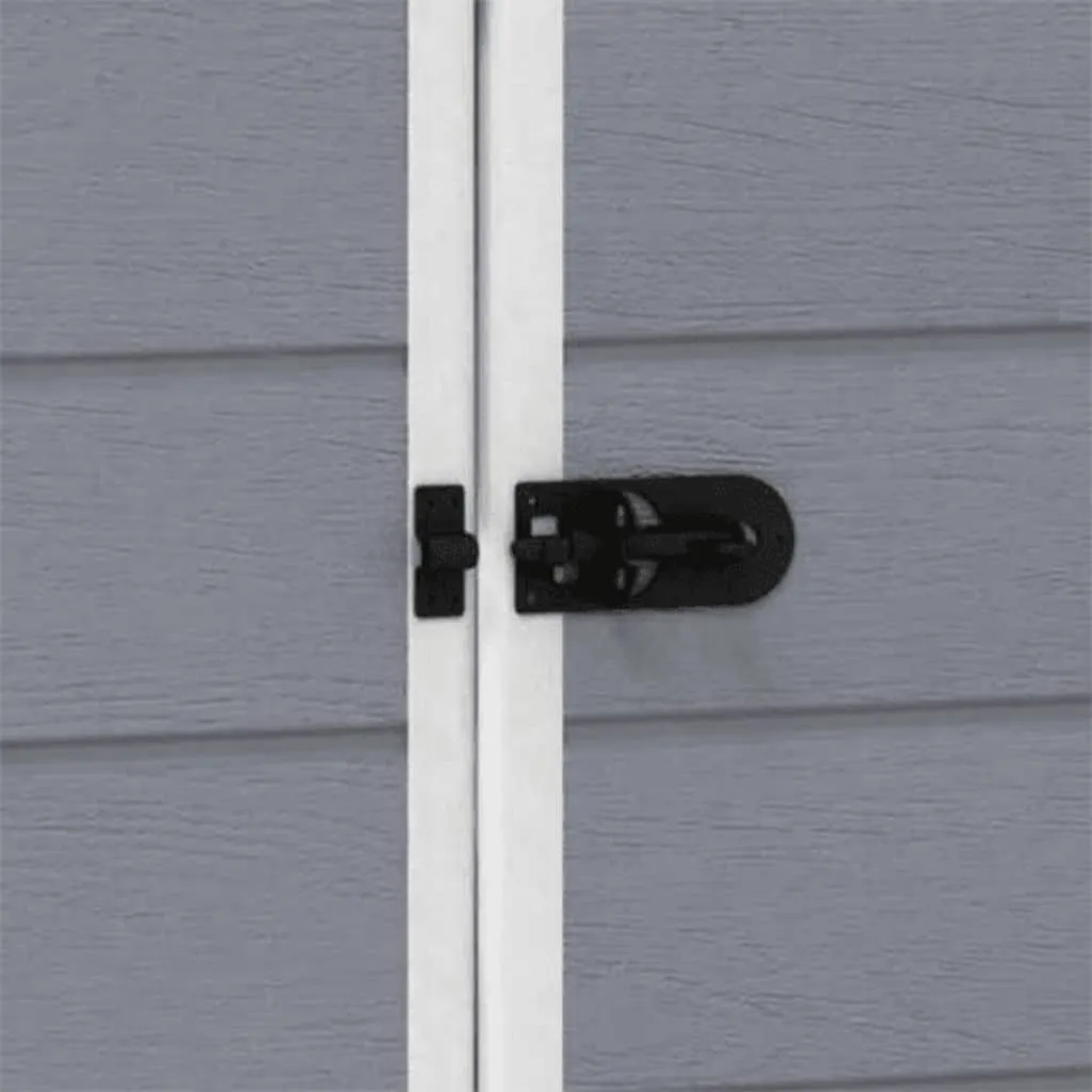 Geeignet für alle Wetterbedingungen, beständig gegen Fäulnis, Rost und andere Beschädigungen. Durchdachtes Design und übertriebene Größe machen die Aufbewahrung bequem. Die Bodenplatte hält Ihr Eigentum sauber und trocken. Das Fenster gibt dem Schuppen natürliches Licht, aber die Belüftung trägt dazu bei, eine sichere Umgebung im Schuppen zu erhalten. Einfache Montage mit Haushaltswerkzeugen. Das Manor 6×5 Staufach ist langlebig mit einer doppelwandigen Konstruktion. Es hat auch eine Doppeltür für einfachen Zugang, eine Bodenplatte, eingebaute Belüftung für Sicherheit, ein festes Fenster für natürliches Licht und ein Schließsystem, das zusätzliche Sicherheit für Ihr Eigentum bietet.