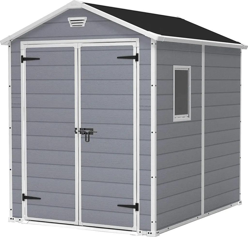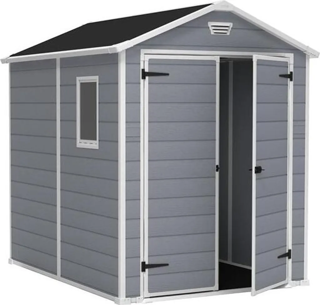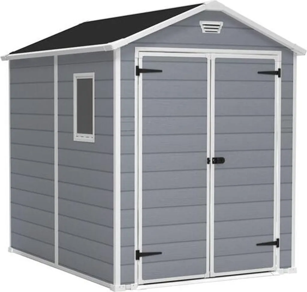 Gemeinsam Zeit im Garten zu verbringen heißt Lebensqualität in aufgeräumter Atmosphäre. Das Manor Kunststoffgerätehaus bietet eine optimale Stauraum-Möglichkeit, die unseren Stil im Freien prägt. Es wartet auf mit einer geräumigen Fläche, um alle Gartenutensilien vor Wind und Regen zu schützen. Dennoch nimmt es durch seine kompakte Größe nicht zu viel Platz im Freien ein. Mit dem klassischen Design und der extremen Stabilität ist es die perfekte Aufbewahrungslösung. Sowohl die Doppeltür, als auch das Fenster unterstreichen den praktischen und zweckdienlichen Charakter. Die besonderen Eigenschaften des Kunststoffmaterials des Hauses verschaffen langjährige Begeisterung ohne jeglichen weiteren Arbeitsaufwand. Somit eine komfortable Lagerlösung, die sich wunderbar in den Garten integriert.