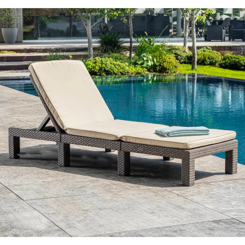 Entspanne dich und genieße deine Freizeit im Garten auf dieser bequemen Daytona Sonnenliege in Cappuccino-Braun von Keter!