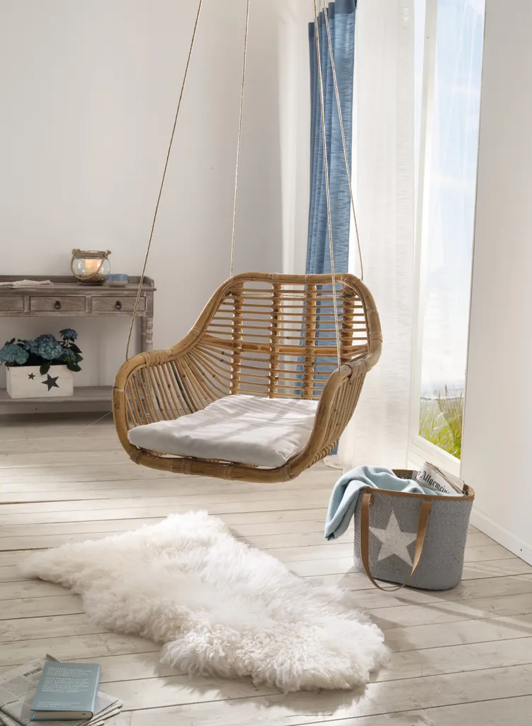 Maße: 64 x 54 x 47 cm, GH 180 cm, Kissen 40 x 48 cm, nur für den geschützten Außenbereich geeignet