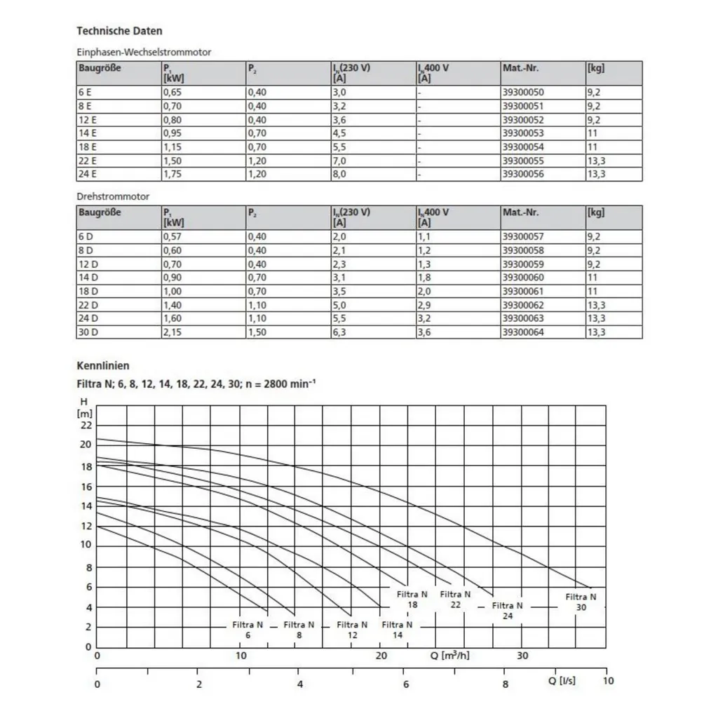 vertikalem Druckstutzen. Eingebauter Grobfilter mit herausnehmbarem