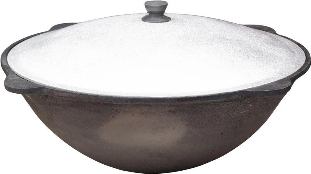 Im Unterschied zu den klassischen Woks, speichert ein dickwändiger gusseiserner Kazan die Energie für lange Zeit und kann sowohl fürs Schmorren als auch fürs Anbraten von Fleisch und Gemüse verwendet werden.