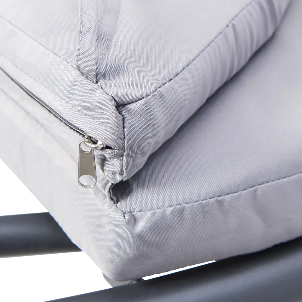 Dieses Schaukelbett ermöglicht den Sommer entspannt zu genießen. Das robuste Gestell ist aus Stahlrohr gefertigt und dank der Pulverbeschichtung besonders witterungsbeständig. Die Textilien aus Polyester sind sehr pflegeleicht. Durch die mitgelieferten Kissen verwandelt sich dieses Schaukelbett zu einer Ruheoase.