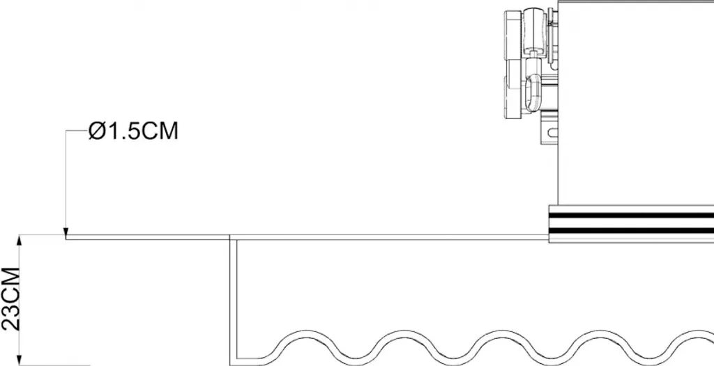 Der Stoff ist etwas kleiner (4,35 m x 23 cm), um die nötige Spannung nach dem Aufziehen zu erreichen.