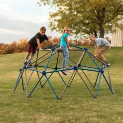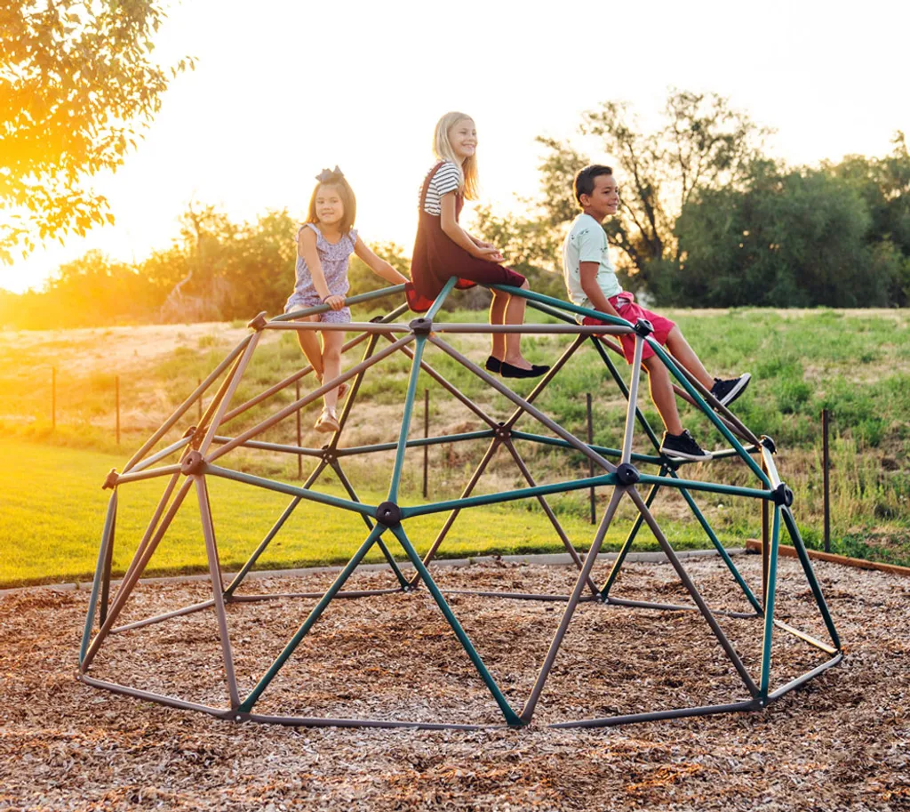 Diese interaktiv gestaltete Kletterkugel für den Außenbereich regt die Fantasie an und fördert so die Motorik und Geschicklichkeit Ihres Kindes. Der Geodome bietet Spiel- und Kletterspaß für Kinder zwischen 3 und 10 Jahren. Bis zu vier Kinder können gleichzeitig klettern und sich austoben.