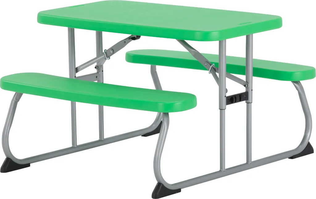 Im Garten, Kinderzimmer oder Wohnzimmer – Der leichte Tisch kann durch seine nützliche Faltfunktion optimal transportiert und verstaut werden. Das Gestell besteht aus rostresistentem und pulverbeschichtetem Stahl. Die Tisch- & Sitzflächen bestehen aus hochwertigen Polyethylenen (HDPE), sind leicht zu reinigen, UV-beständig und verhindern im Gegensatz zu Holz lästiges Absplittern. Die hochwertige und stabile Ausführung sorgt dafür, dass Sie und Ihr Kind lange Freude an diesem Produkt haben. Durch die abgerundeten Kanten und das weiche Material (HDPE) sind die Kinder vor schweren Verletzungen geschützt.