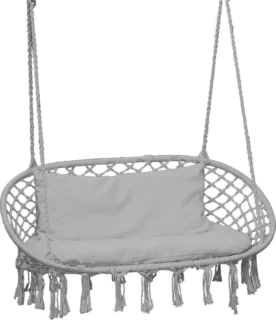 Der Hängesessel verbindet Komfort mit den neuesten Designtrends.Das interessante Design in Kombination mit geknüpften Dekorationen unterstreicht zweifellos die Gestaltung jedes Innen- oder Außenbereichs.