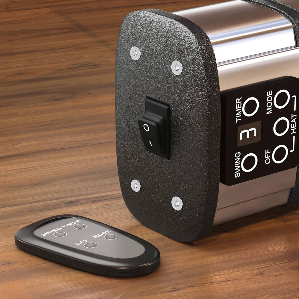 Der Heizstrahler verfügt zusätzlich über eine zuschaltbare Oszillationsfunktion sowie einen Timer , der von 0 bis 9 Stunden eingestellt werden kann.