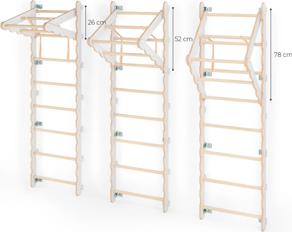 – Die sprossenwand kinderzimmer ist 210 cm hoch. Die Kinder können die Sprossen hochklettern, sich hochziehen und komplizierte Figuren üben.