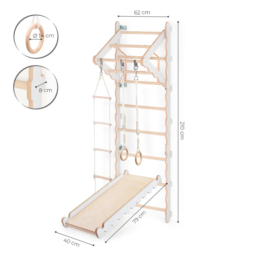 Auch bekannt als: turngeräte für kinder indoor, indoor turngeräte für kinder, sprossenwand mit klimmzugstange, klimmzugstange sprossenwand, montessori klettern, ringe turnen kinder indoor, Turnringe kinder indoor
