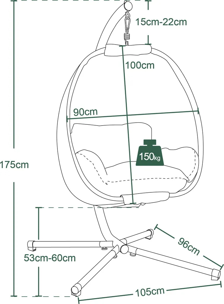 Gesamtmaße (Hängesessel): 105 cm (L) x 96 cm (B) x 175 cm (H)