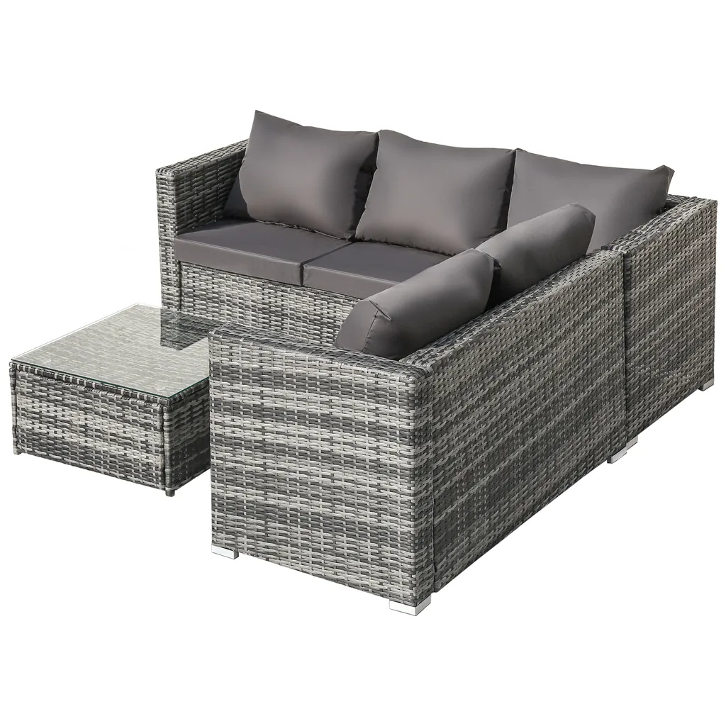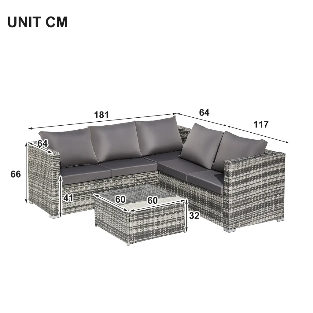 🌱【Kompaktes Patio-Set-Design】Das Gartensofa-Set umfasst ein Ecksofa, ein Einzelsofa und einen Couchtisch. Wir haben die Standard-Terrassenanordnung zu einem praktischen, kompakten Set zusammengefasst, das Ihren Garten nicht überfordert und gleichzeitig geräumige Sitzgelegenheiten bietet.
