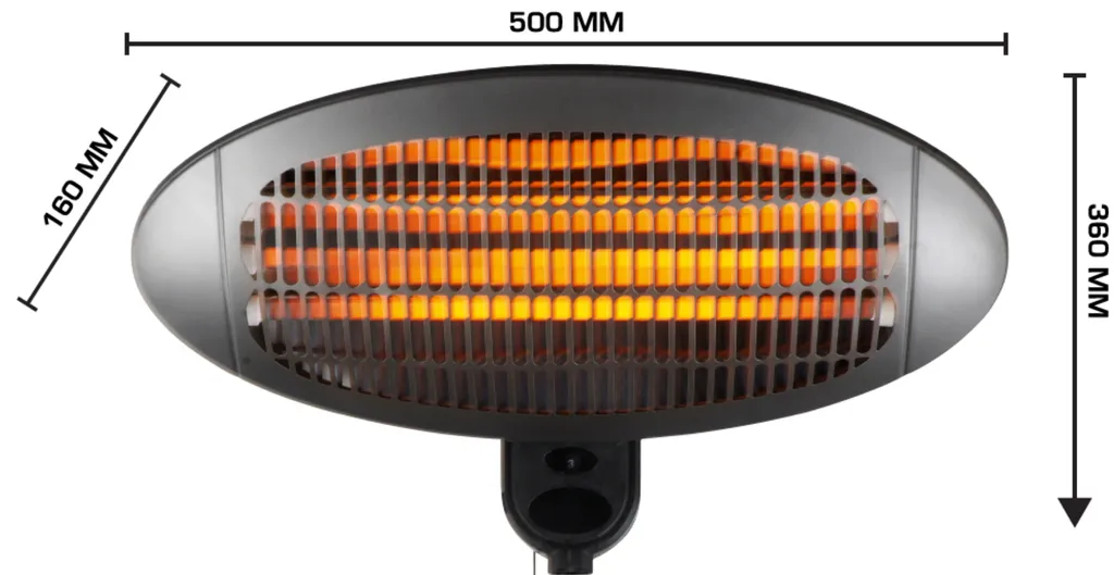 Dieser ovale Heizstrahler gibt eine angenehme Wärme ab und kann problemlos an einer Wand montiert werden, und mit dem schwenkbaren Reflektor (Neigungswinkel 0-45°) können Sie ihn individuell auf Ihre persönlichen Bedürfnisse ausrichten.
