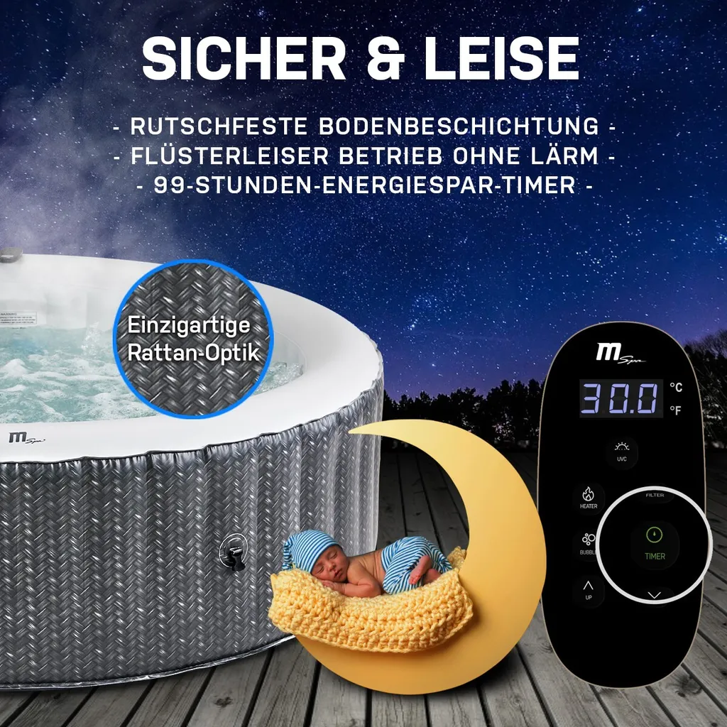 - Original MSpa – Miweba Weltweit größter MSpa Partner – Geeignet für 6 Personen – UV-C Filter – 360°-Sprudelsystem 138 dynamischen Luftdüsen – Winterfest – Rattan Optik