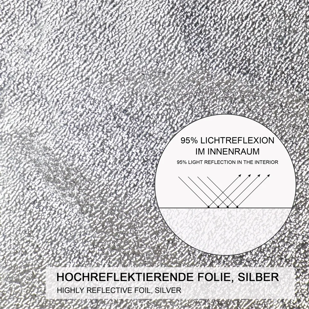 - 95% Lichtreflektion im Innenraum ördert effektives Wachstum der Pflanzen